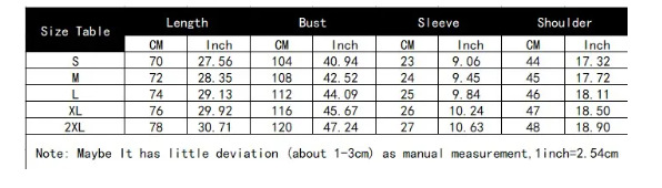 Sizes: S, M, L, XL, 2XL