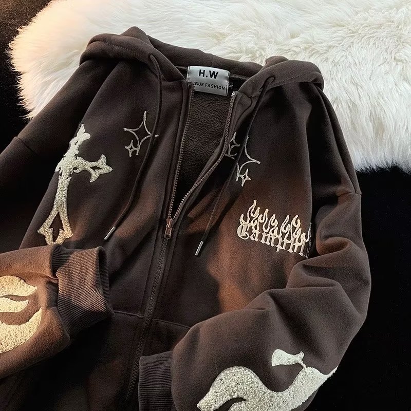 Mens Embroidered Zip Up Hooded Sweatshirt