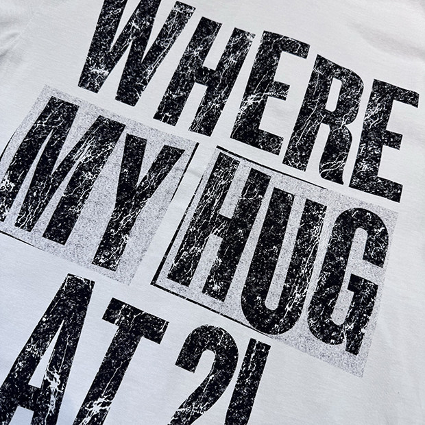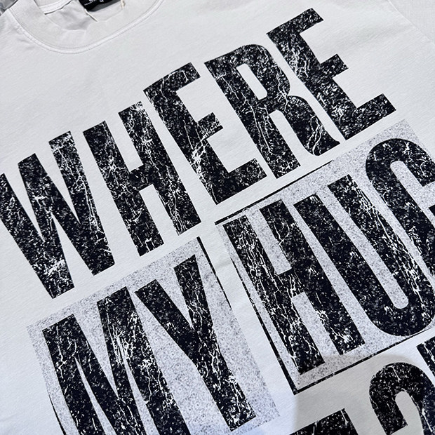 Distressed Print: Vintage-inspired letter graphics with worn aesthetic